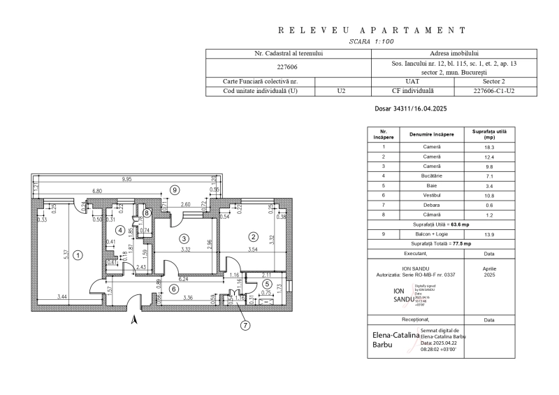 Descoperă acest apartament de 3 camere, amplasat într-o zonă excelentă a Bucureștiului – Șoseaua Iancului nr. 12 dintr-un bloc solid, situat în Sector 2. Cu o suprafață totală de 77,5 mp și o suprafață utilă de 63,6 mp, apartamentul oferă o compartimentare eficientă și un balcon + logie spațioase de 13,9 mp.
